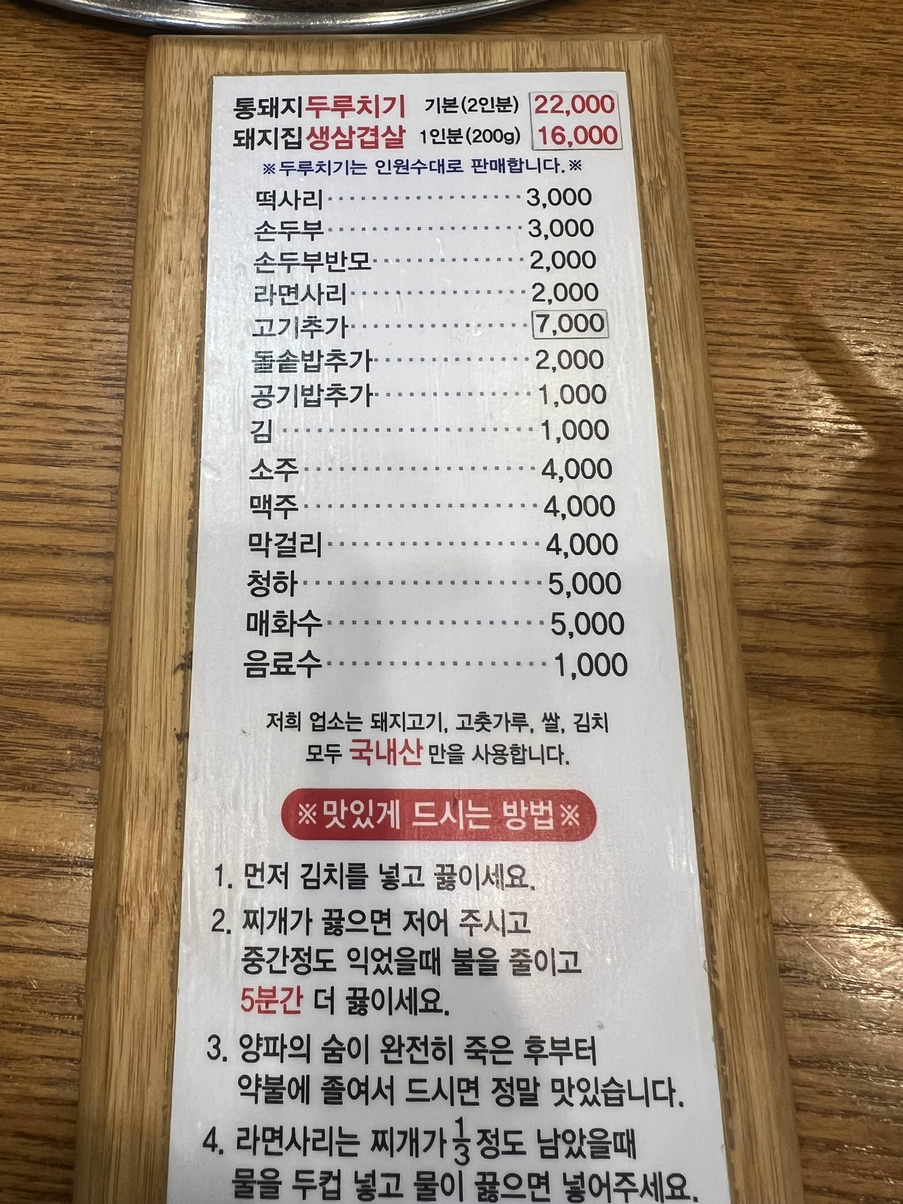 - 주요메뉴: 통돼지두루치기(2인), 생상겹살