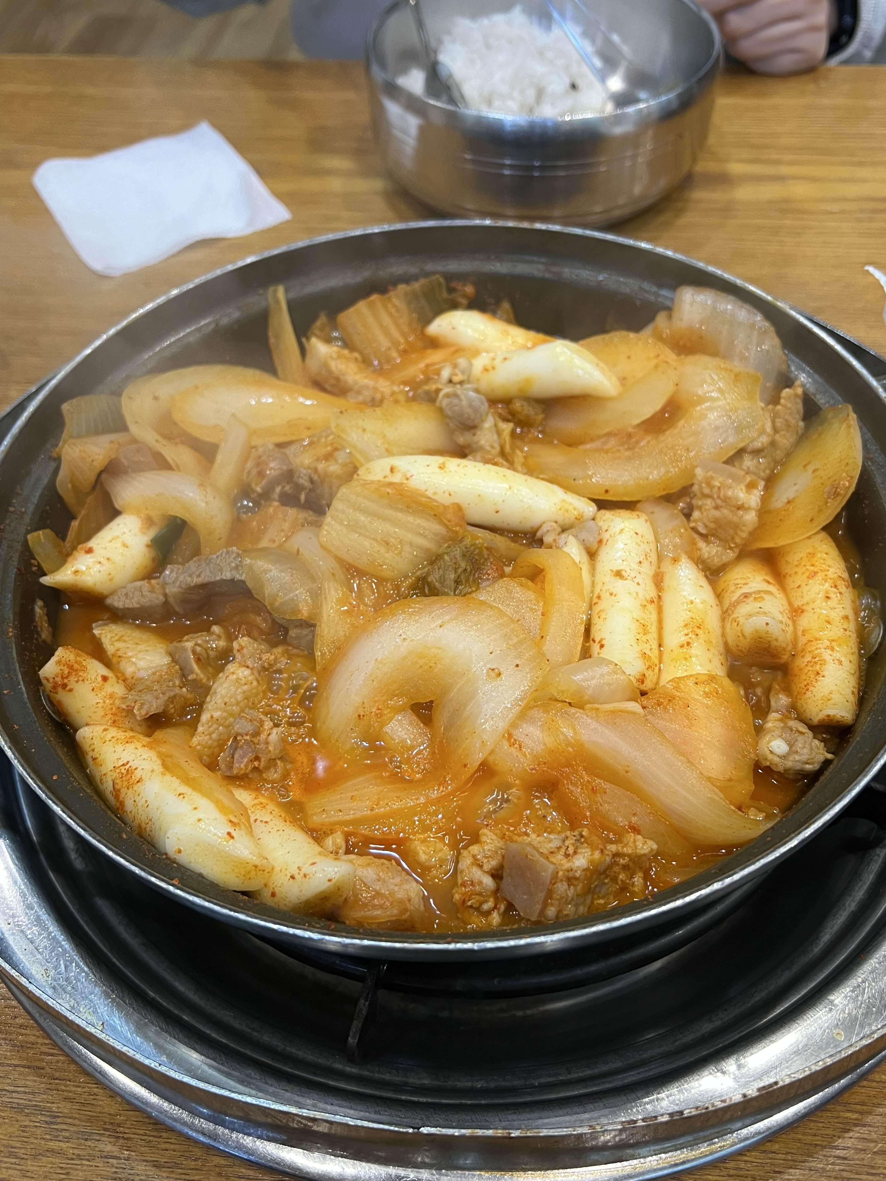 대신 양파가 한가득이라 끓이면서 나오는 물이 김치, 고기와 조화를 이루면서 정말 엄청난 맛이 탄생합니다.