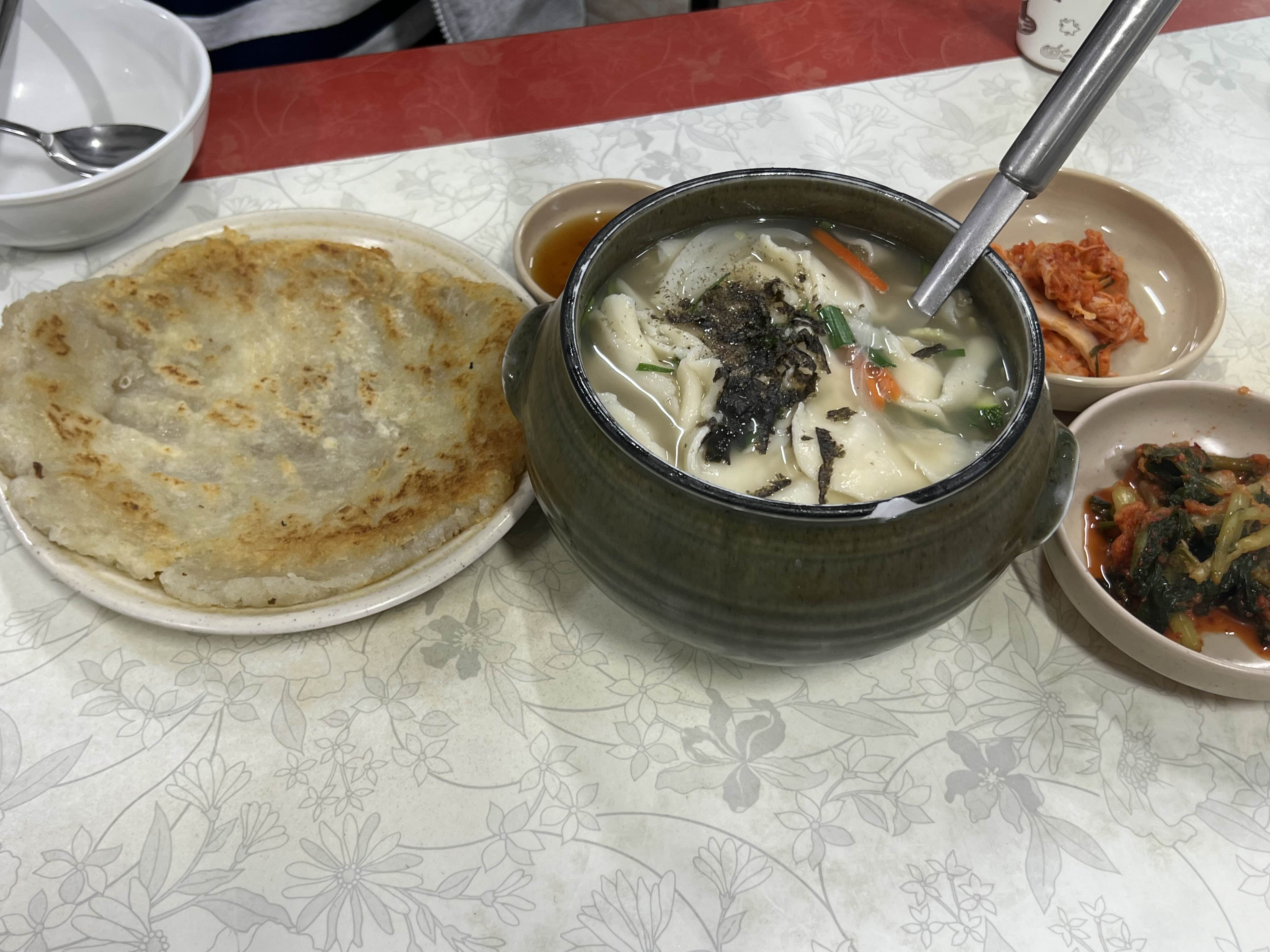 저는 오늘 시그니처 메뉴인 수제비와 감자전을 먹어보았습니다.