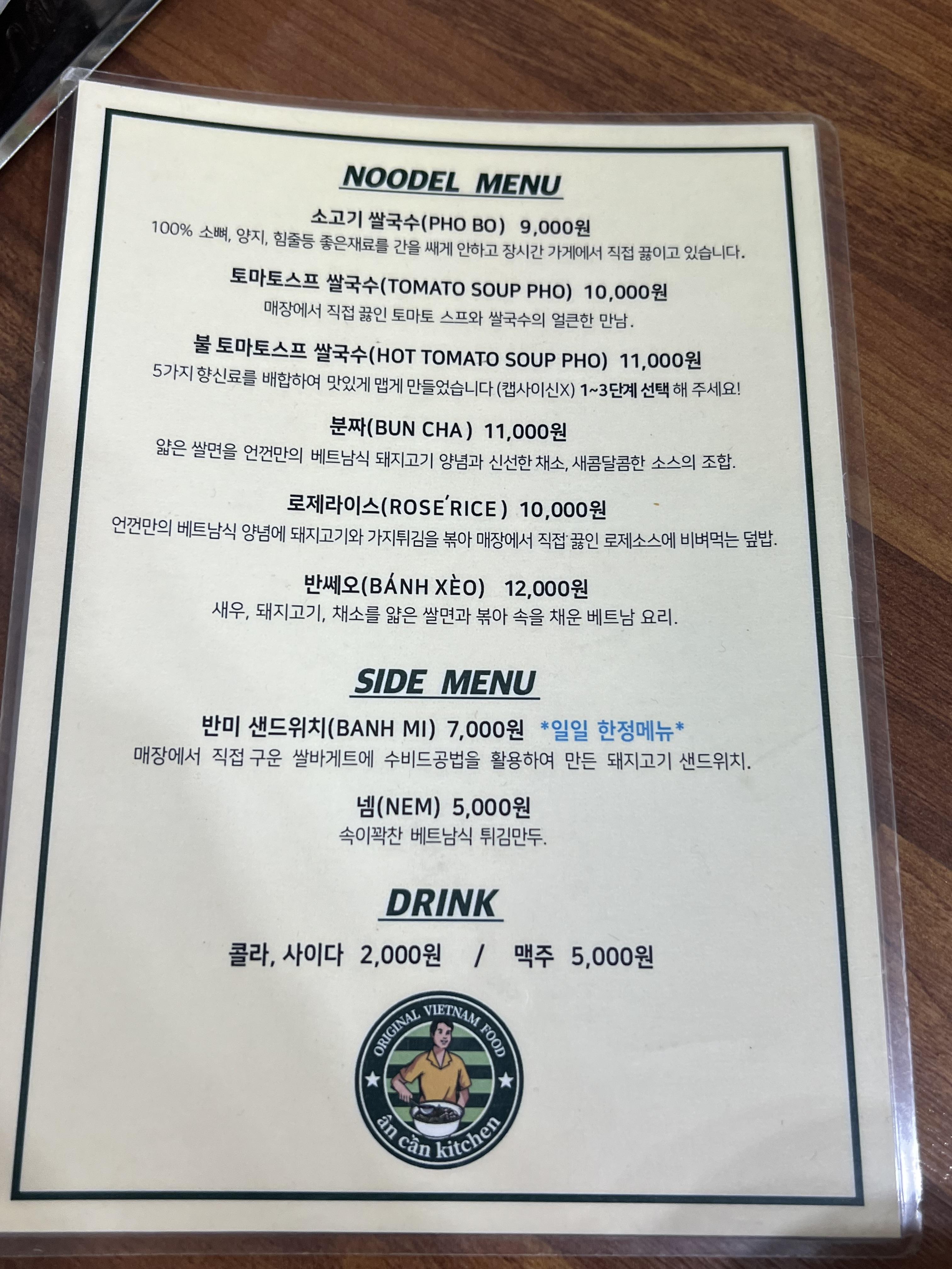 메뉴판에 있는 메뉴 외에도 월남쌈, 껌승(베트남식 돼지갈비 덮밥)을 신메뉴로 주문할 수 있답니다.