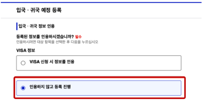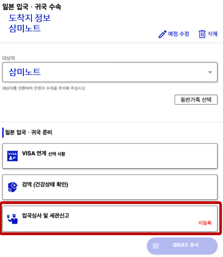 - 입국심사 및 세관신소 미등록되어 있는 부분을 채워봅시다.