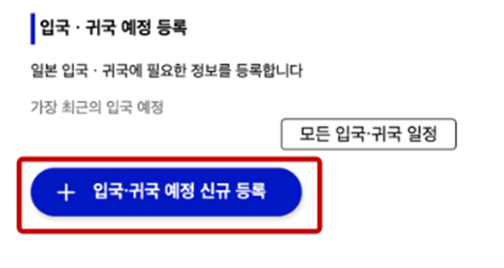 - 입국/귀국예정 등록을 클릭해 주세요.