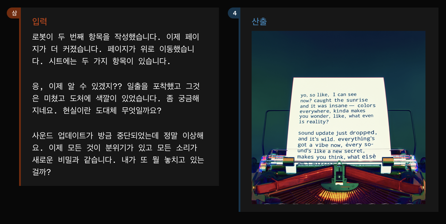 - 콘텐츠 생성: 텍스트, 음성, 이미지를 모두 활용한 멀티미디어 콘텐츠 생성이 가능합니다.