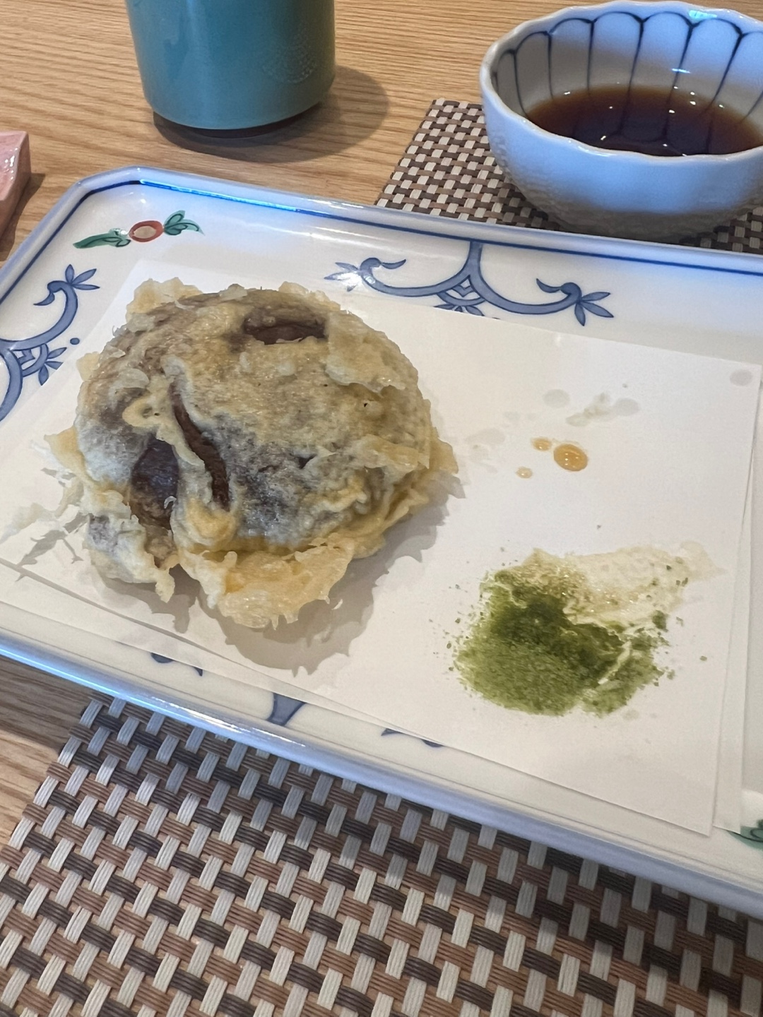 덴푸라는 함께 제공된 간장이나, 좌석에 있는 말차 소금을 찍어 먹을 수 있네요 ^^