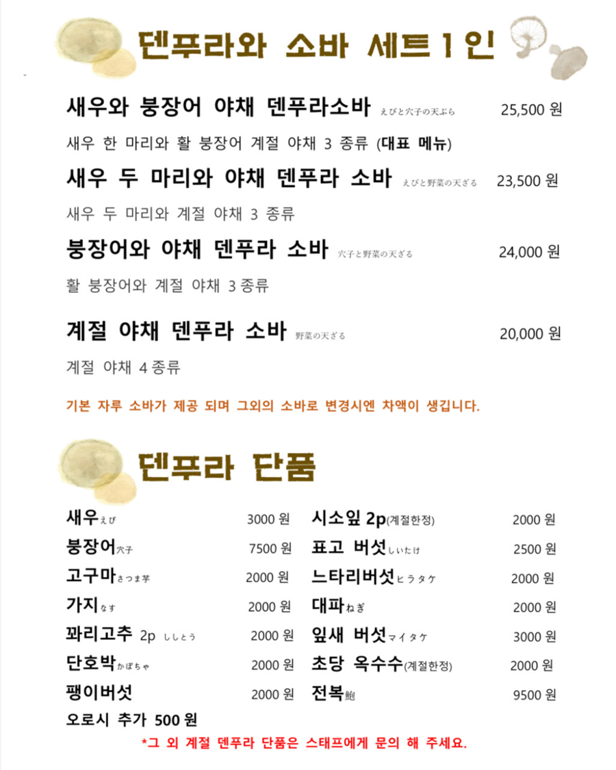 - 주요메뉴: 소바, 덴푸라