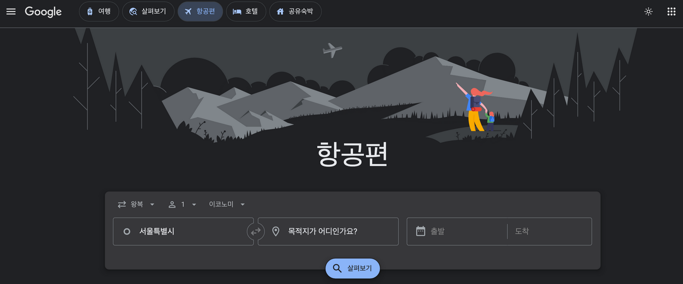 구글에서 제공하는 항공 서비스로 사용자가 이용하기에 편하게 세팅되어 있습니다.